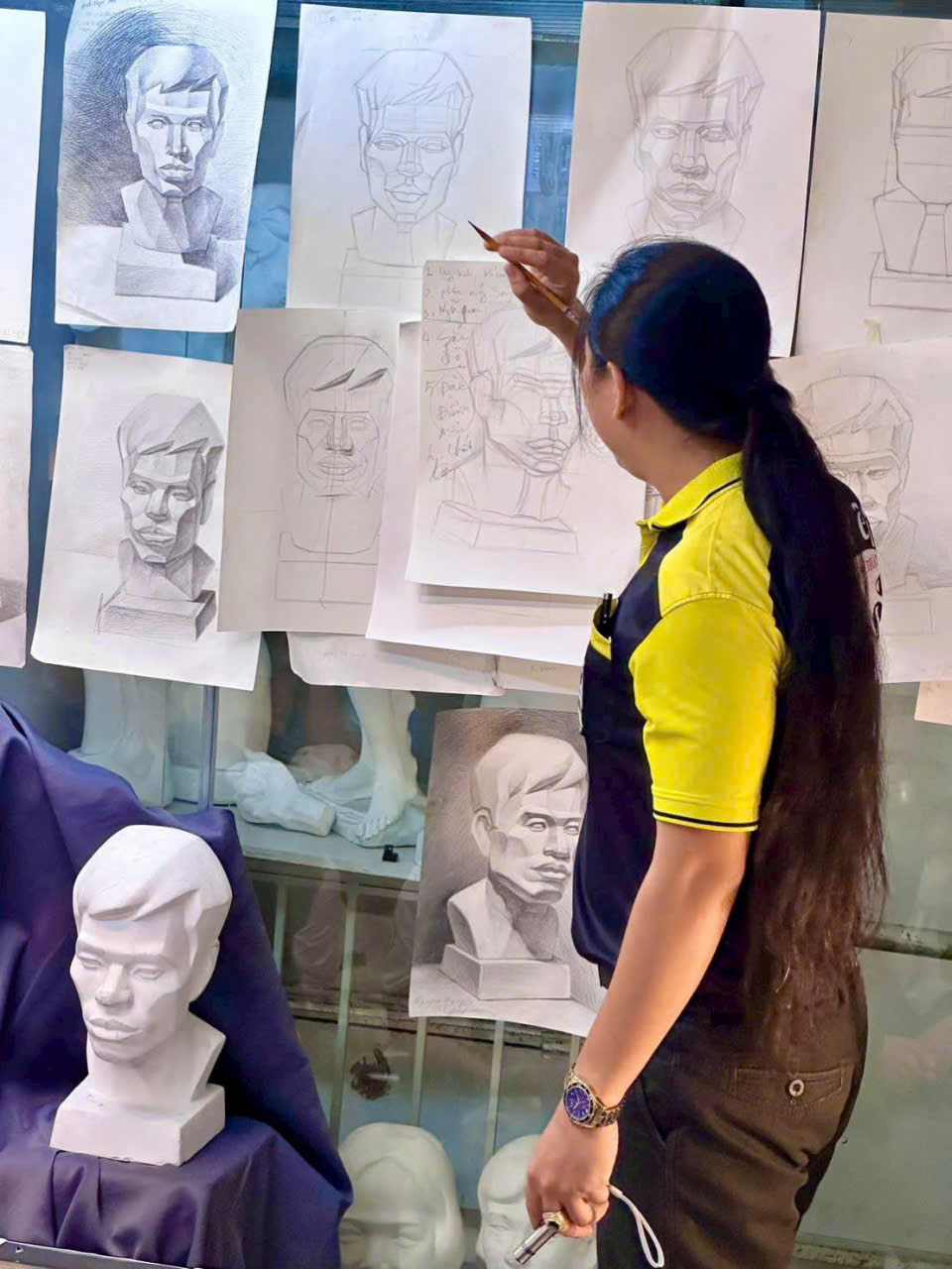 1. Khi vẽ đầu tượng, chân dung