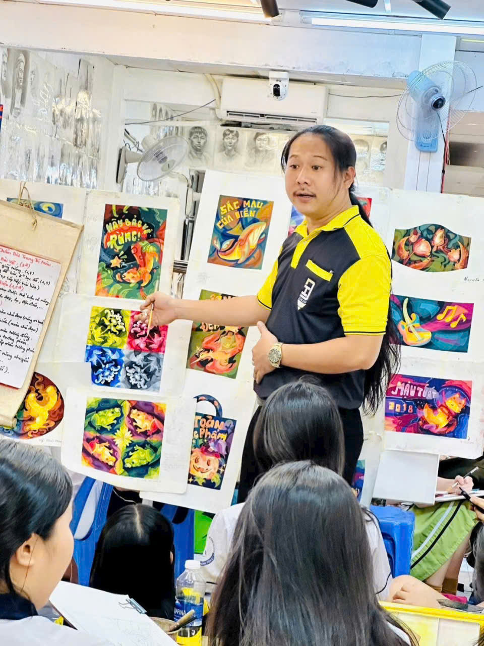 Học viên được thực nghiệm pha màu, tạo sắc độ, phối màu theo chủ đề để hiểu bản chất thay vì học lý thuyết khô khan.