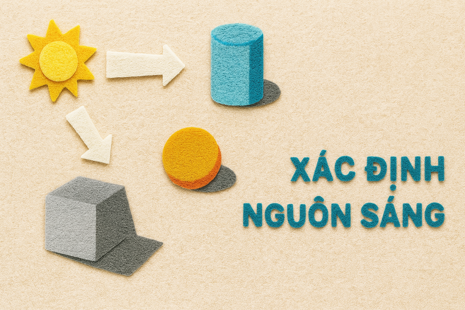 Bóng đổ giúp khối hộp “đứng vững” trên mặt phẳng. Bạn cần xác định: