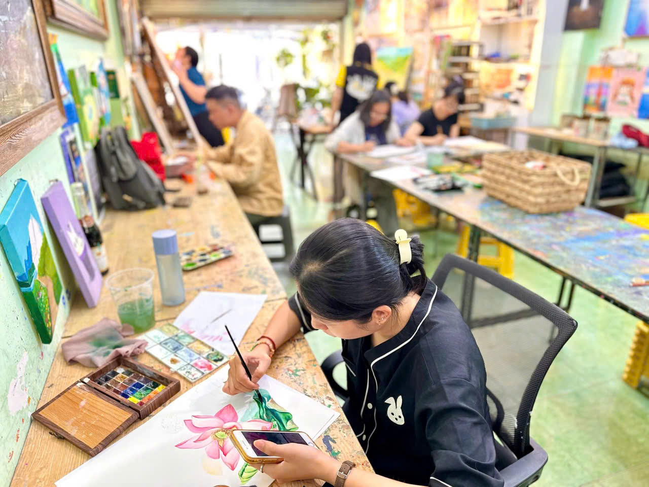 Một buổi vẽ kéo dài 2–3 giờ, trong đó bạn chỉ làm duy nhất một việc: tạo nên cái đẹp. Không điện thoại, không email, không deadline. Đó là liệu pháp thật sự.