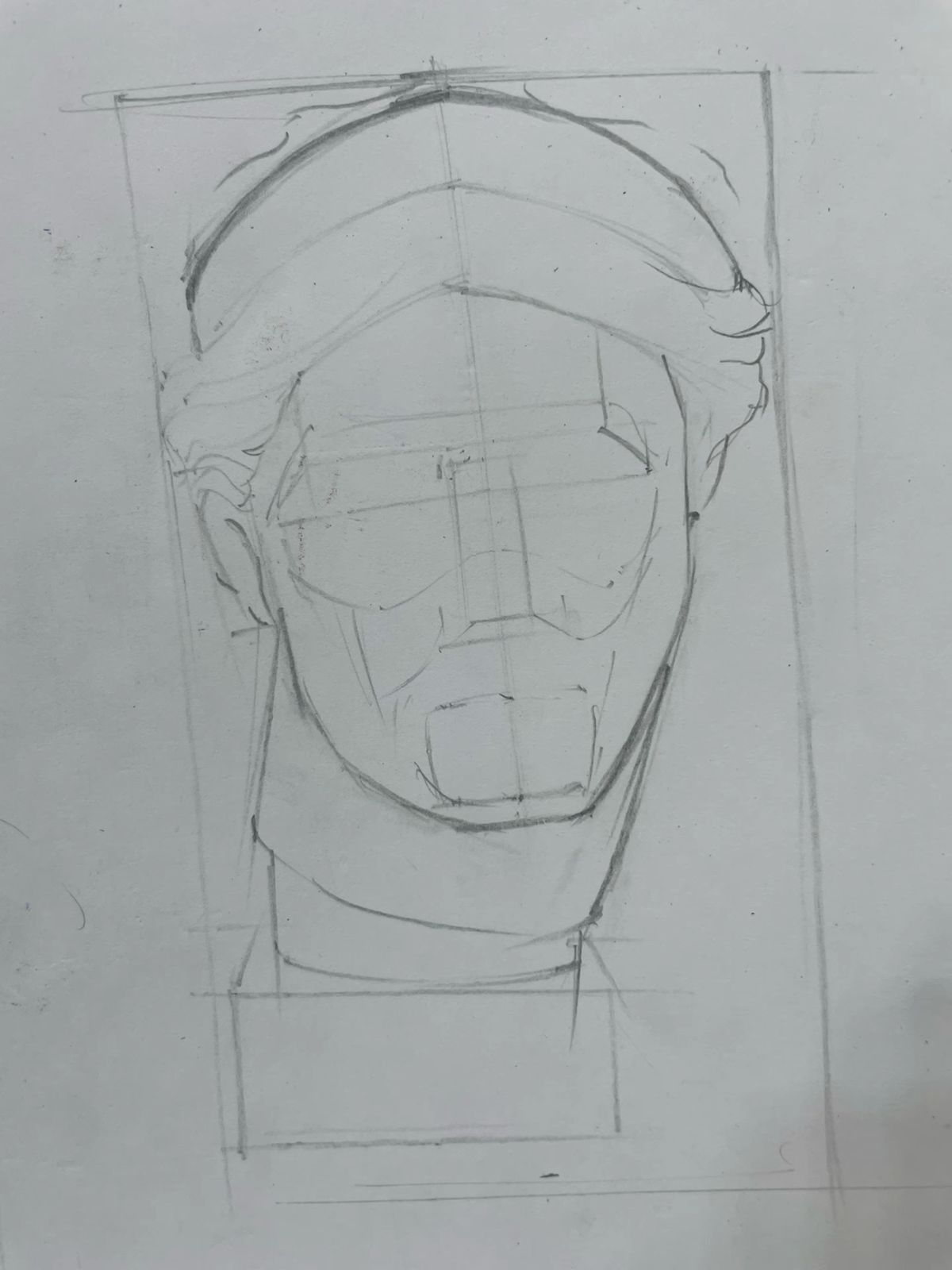 • Dùng nét nhẹ để dựng toàn bộ đầu tượng bằng khối: